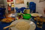 Byliśmy głodni. Nasi nowi znajomi zaprowadzili nas do "restauracji" w sąsiedztwie. Ja- mięso z cebulą i frytki,dziewczyna- ryba z frytkami. Do tego standardowo dodatkowy ryż,fasola i niestandardowo makaron i oczywiście piwo. Za całość zapłaciliśmy 32 reale a jedzenie donosił nam co chwilę inny członek rodziny, która kilka metrów od nas w salonie oglądała telewizję. Nie muszę chyba mówić,że byliśmy jedynymi klientami.