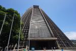 Wciąż włócząc się po centrum miasta, przemykaliśmy między zabytkowymi budynkami i biurowcami,gdyż właśnie taką kombinację tworzy centrum Rio. W porze lunchu robi sie dość tłoczno i trudno o wolny stolik w pobliskich jadłodajniach. Chodziliśmy raczej bez celu,to w jedną, to w drugą uliczkę. Na tle innych budynków zdecydowanie wyróżnia się piramidalna budowla - Katedra św. Sebastiana, jedna z najoryginalniejszych budowli sakralnych,jakie było nam dane widzieć.