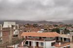 ...Następny dzień przywitał nas gąszczem chmur kłębiących się nad głowami niczym ciężkie kotary. Tylko gdzieniegdzie malutkie, jaśniejsze oka mrugały do nas porozumiewawczo, że to tak tylko na chwilę, że potem będzie lepiej... Nie dałam jednak wiary tym znakom z nieba, a w moim przekonaniu utwierdził mnie telefon, że lot został przełożony z powodu niekorzystnej pogody o 2 godziny. Czyżby los znów wygrywał..? Żeby się czymś zająć włączyłam sobie telewizję-i wtem moim oczom ukazały się sceny rodem z wojny domowej. Wojsko, wielgachne kamienie blokujące drogę, latające pociski... W tym momencie się załamałam. Tak centralnie, od środka. Strajk w Arequipie, ludzie wyszli na ulice, nieciekawa sytuacja... Tylko co ja mogę? Skoro los się uwziął, skoro zamiast uczciwej walki on podrzuca mi takie kłody pod nogi, to co ja mogę..? Nieee, trzeba jakoś zmienić nastawienie, może jednak będzie dobrze..? Żeby odciągnąć myśli od niechybnej klęski poszliśmy poszwendać się troszkę po hotelowym terenie. W jednym z zakamarków ogrodu odkryłam ...2 hamaki. :) Diabeł wylazł zza uszu, iskierki zaświeciły się w oczach i po minucie można było zobaczyć dorosłą babę hasającą po hamakach niczym rozbestwione dziecko. ;) Ale muszę przyznać-nic nie robi duszy lepiej w takie ponure dni niż odrobina beztroskiego szaleństwa! :) Po skończonych harcach udało nam się dostać na dach naszego budynku, nie ma to jak podziwiać pochmurny poranek w pełnej krasie ... ;)