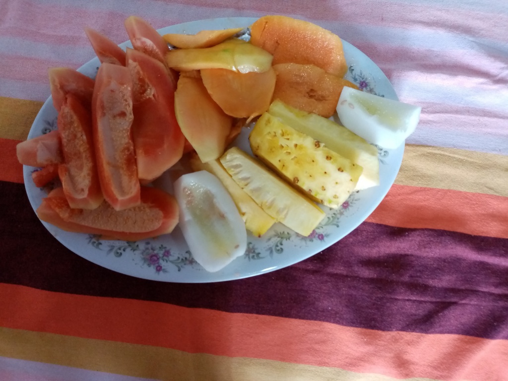 anansy 250-350 LKR kg 5-7 zl slodziutkie , mango 800 – 1200 LKR kg 16-24zl ale najlepsze mango na swiecie / żółciutkie , slodkie/ podobno cena taka gdyż to nie sezon na mango , papaya 250-350 LKR kg 5-7 zl , coconut 50-80 LKR , tortilla z kurczakiem 450 LKR 9 zl , ryz z curry / curry jest do wszystkiego/ i z dodatkami / warzywa , owoce morza , kurczak od 400 – 1000 LKR 8-20 zl
