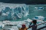 Spacer na mirador, z którego można oglądać lodowiec i błękitny góry lodowe to 1,5 km po kamienistej plaży (i na końcu trochę po górce przez krzaki). Część trasy 'po plaży' jest straszna (w stronę 'do') - wieje tak, że trudno się idzie, zimno, chmury, widoki ładne, ale jakoś tak strasznie (i ta myśl, że trzeba będzie wrócić). Sam mirador fajny, góry lodowe robią wrażenie, ale brakuje porządnego obiektywu (mamy 28-200) żeby zrobić takie fajowe pocztówkowe kadry. Pada hasło do powrotu, i to jest najgorsze 1000m do przejścia jakie pamiętam w ostatnich latach (już godzinny spacer po dżungli w górach obok Pereiry w rzęsistym deszczu nie był tak zły) - wieje tak, że młodsze córki trzymam mocno za rękę a mimo to je podrywa czasem nad ziemię. Kawałek dalej idzie starsza pani, którą wiatr porywa, przewraca i toczy po ziemi. Dalej widzę kogoś kto goni z wiatrem jakąś rzecz, którą mu wiatr porwał. Co gorsza, z każdą chwilą wiatr się nasila - coś siecze w twarz, i w sumie nie wiem czy to drobne kamyczki czy woda. Trasa - straszna (ale przy dobrej pogodnie na pewno piękna).